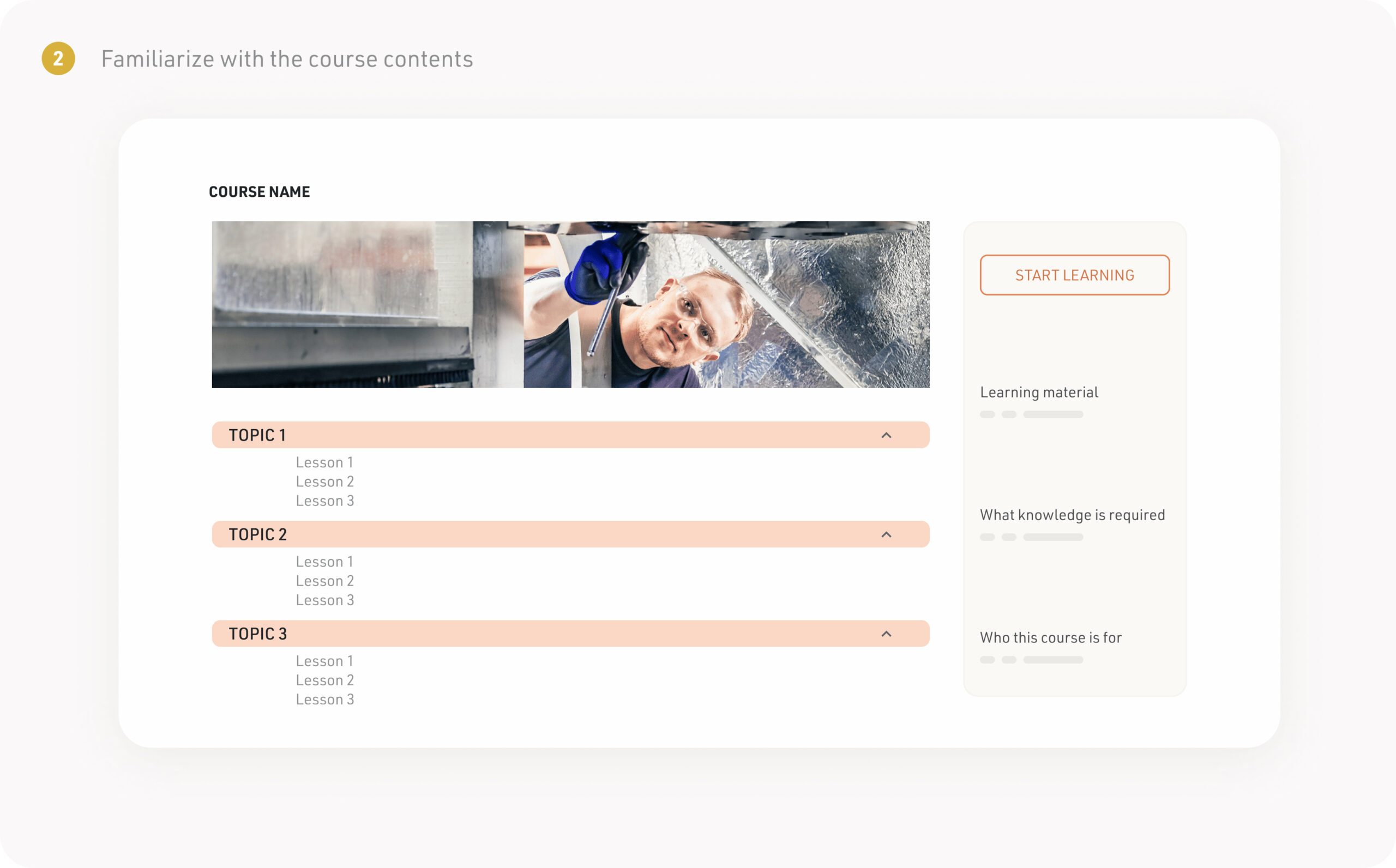 - Press the START LEARNING button to go to the course page.
