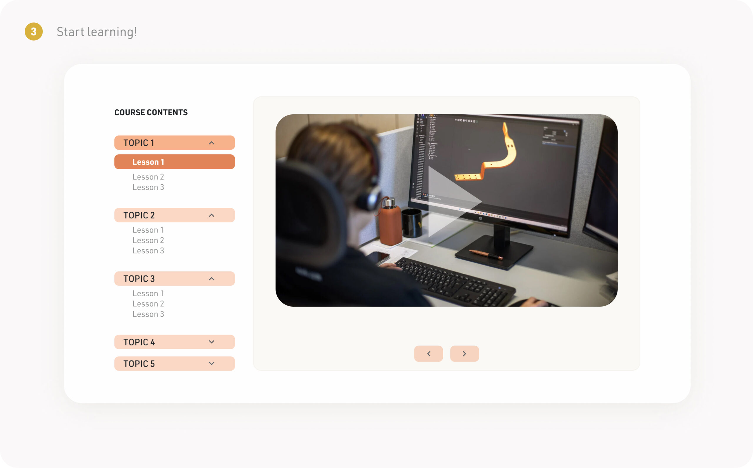 - Lesson content: video/ text/ quiz, etc.
